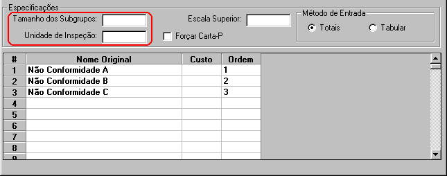 a) Carta np Para a criação deste tipo de carta, conforme a Tabela 1, um valor no campo “Tamanho dos Subgrupos” (ver Fig. 3) deve ser definido. ![]() Figura 3 Executando-se a característica, note que o tipo da carta (NP), só aparecerá depois de inseridos no mínimo 2 subgrupos. Isto vale para todas as cartas. Observe também que o “Total Inspecionado“ está definido como “100” por causa do campo “Tamanho dos Subgrupos” definido na janela de criação desta carta (ver Fig. 3). ![]() Figura 4 b) Carta p-np Para a criação deste tipo de carta, os campos “Tamanho dos Subgrupos” e “Unidade de Inspeção“ devem estar vazios, conforme a Tabela 1. Observe na Figura 5 que a opção “Forçar Carta-P“ está desmarcada mantendo-a como carta do tipo “p-np” (Fig. 7), caso contrário, transformar-se-á numa carta especificamente do tipo “p” conforme Figuras 6 e 8. ![]() Figura 5 ![]() Figura 6 ![]() Figura 7 ![]() Figura 8 c) Carta c Para a criação deste tipo de carta, os campos “Tamanho dos Subgrupos” e “Unidade de Inspeção” (ex.: mm, cm, g, kg, ºC, ºF , etc.) devem estar preenchidos, conforme a Tabela 1: ![]() Figura 9 ![]() Figura 10 d) Carta c-u Para a criação destes dois tipos de carta, o campo “Unidade de Inspeção” devem estar preenchido com uma unidade de medida (ex.: mm, cm, g, kg, ºC, ºF , etc.), conforme a Tabela 1. Observe que se a opção “Forçar Carta-U” (ver Fig. 11 e 13) estiver desmarcada, a carta poderá ser considerada como c e u. Então, marque a opção “Forçar Carta-U” caso queira torná-la exclusivamente do tipo u (ver Fig. 12 e 14). ![]() Figura 11 ![]() Figura 12 ![]() Figura 13 ![]() Figura 14 Bom trabalho e até o próximo mês pessoal! |